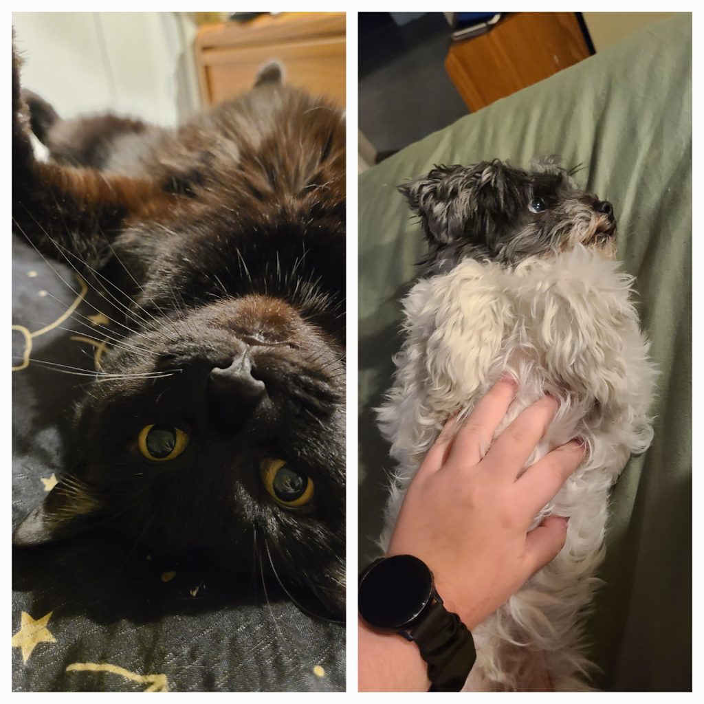 Sadie has two pets who, while chaotic and bad at listening, are huge parts of her life of which she loves dearly.