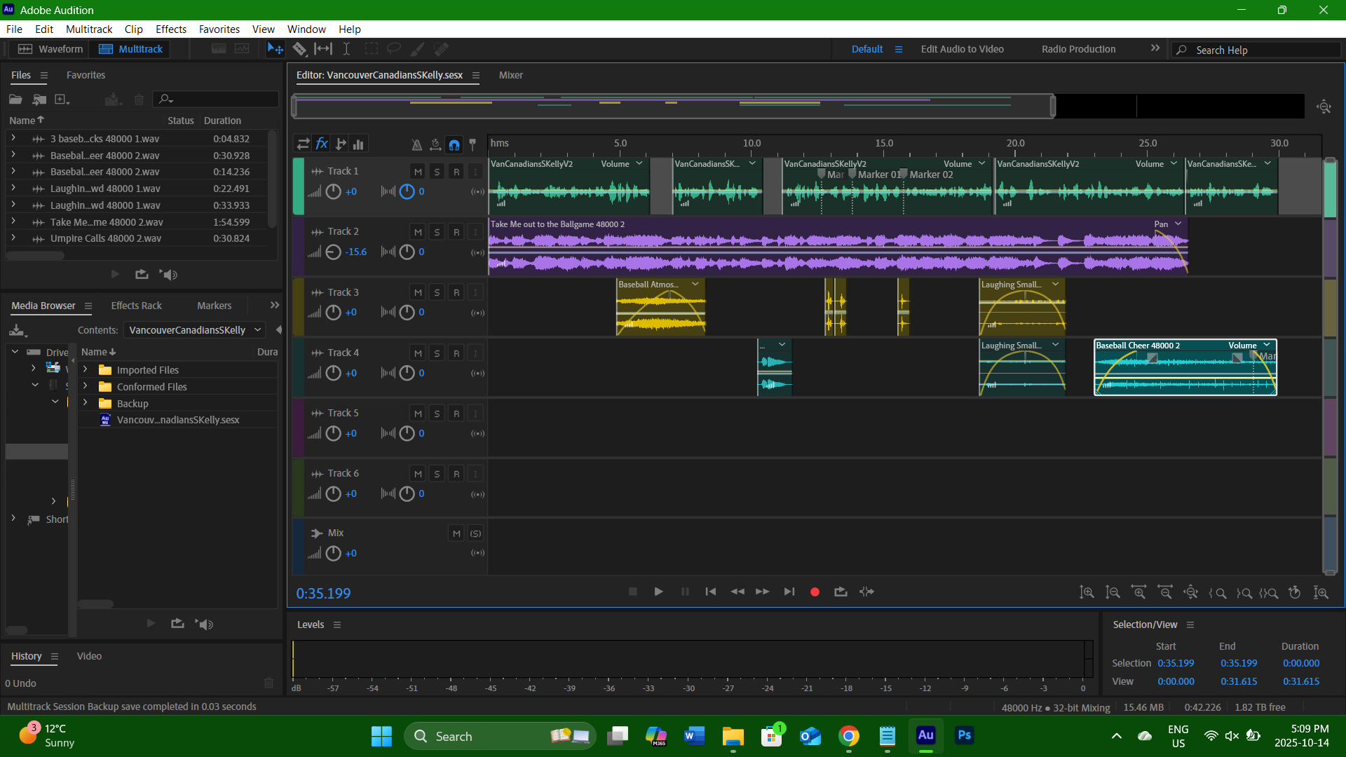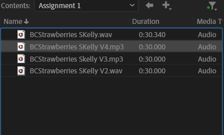 In the process of recording this voiceover, I wanted give myself a way to keep track of my progression. In doing so, I saved multiple versions of this project. This let me test multiple versions of my edits to see what sounded clear and controlled. By saving each version separately, it allows me to practice my file organization, and lets me easily swap between versions without worry of losing anything.