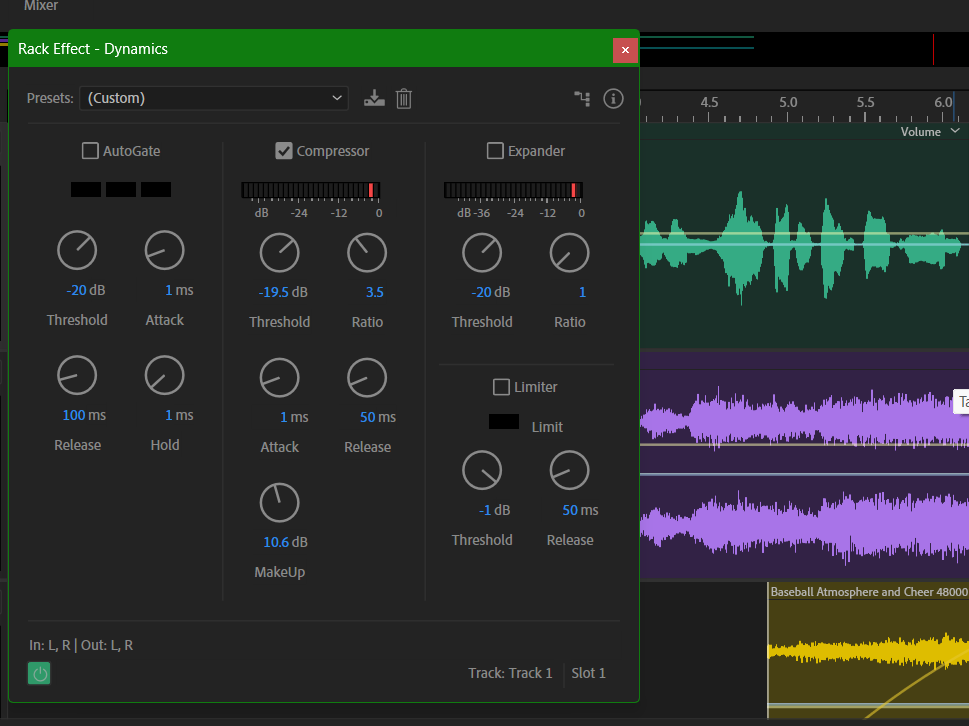 In my Sound Design class, one of the most important things I had to do for this assignment, and what was taught directly before being given the assignment, was compression. Compression allows me to basically level out the highs and lows in my volume levels. For example, if there were any bits in my voiceover that were a little too quiet compared to the rest, compression would fix it.